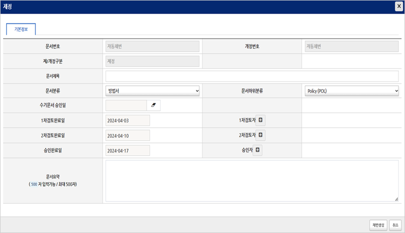 - 문서 제/개정 - 기본정보